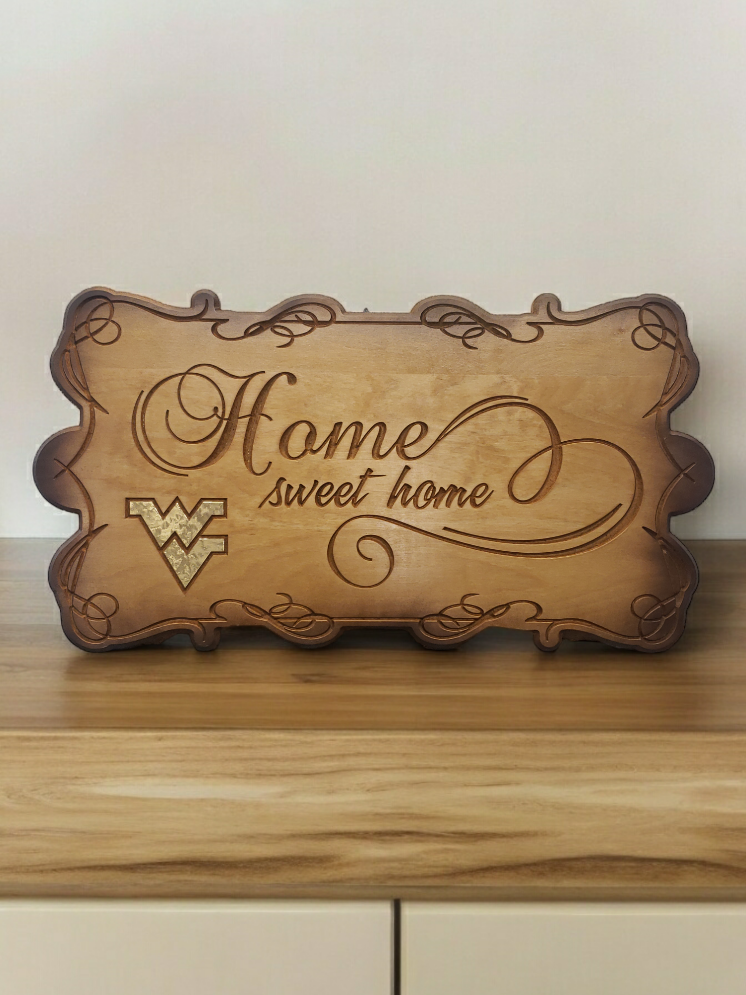 Introducing the WVU Home Sweet Home Sign, crafted with high-quality wood for a rustic and durable touch. Perfect for decorating your home or as a gift for any Mountaineer fan. Show off your WVU pride with this charming sign.